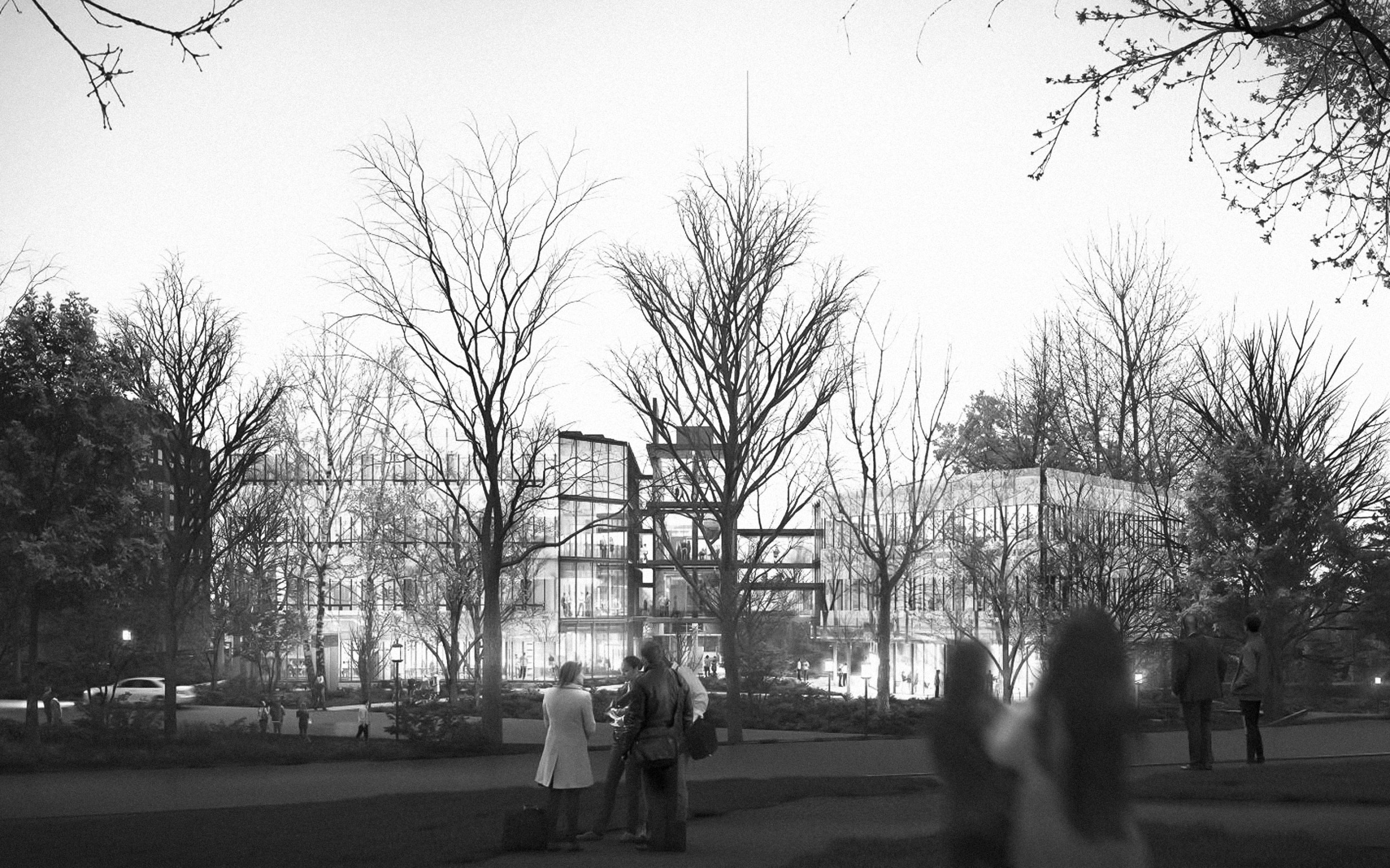 The SNF Agora Institute Building at Johns Hopkins University is conceived as a civic and academic forum dedicated to strengthening democratic dialogue and civic engagement on a global scale.